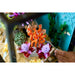 Este acuario decorativo para el hogar incluye funciones divertidas. Gira los diales y manivelas para animar un pez nadando, corales que se mecen, un cangrejo que emerge de una cueva submarina y un cofre del tesoro que se abre. El acuario incluye 4 peces de juguete, una variedad de plantas y corales, gusanos marinos, una concha de ostra con una perla dentro, caracoles marinos LEGO y burbujas de aire.